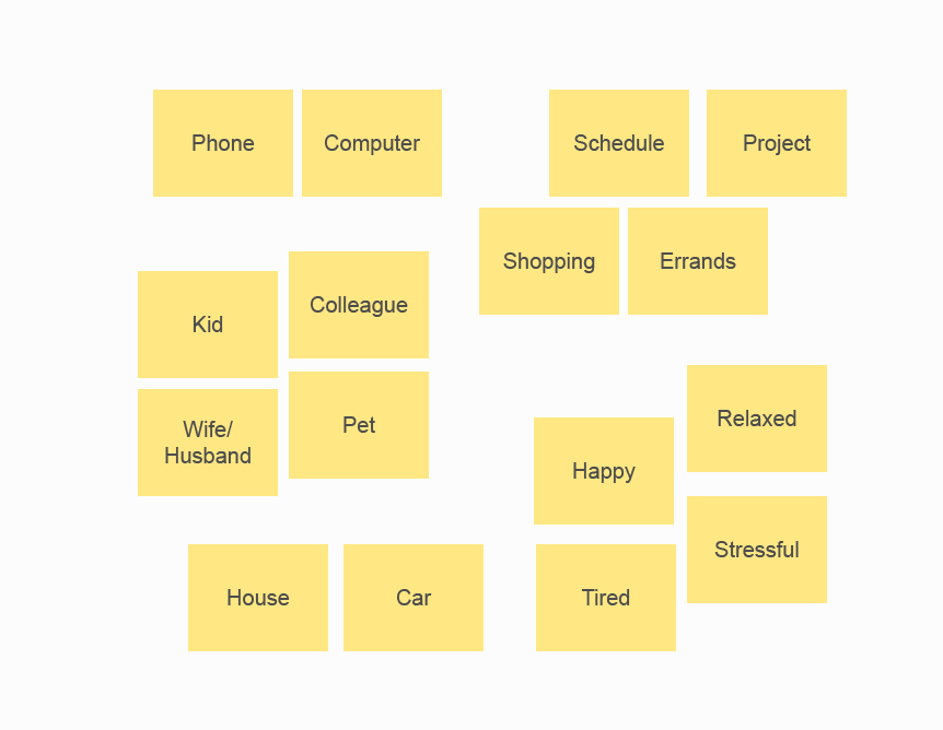 Walking through a scenario associated with stress (which might involve phone, schedule, kid, and project)