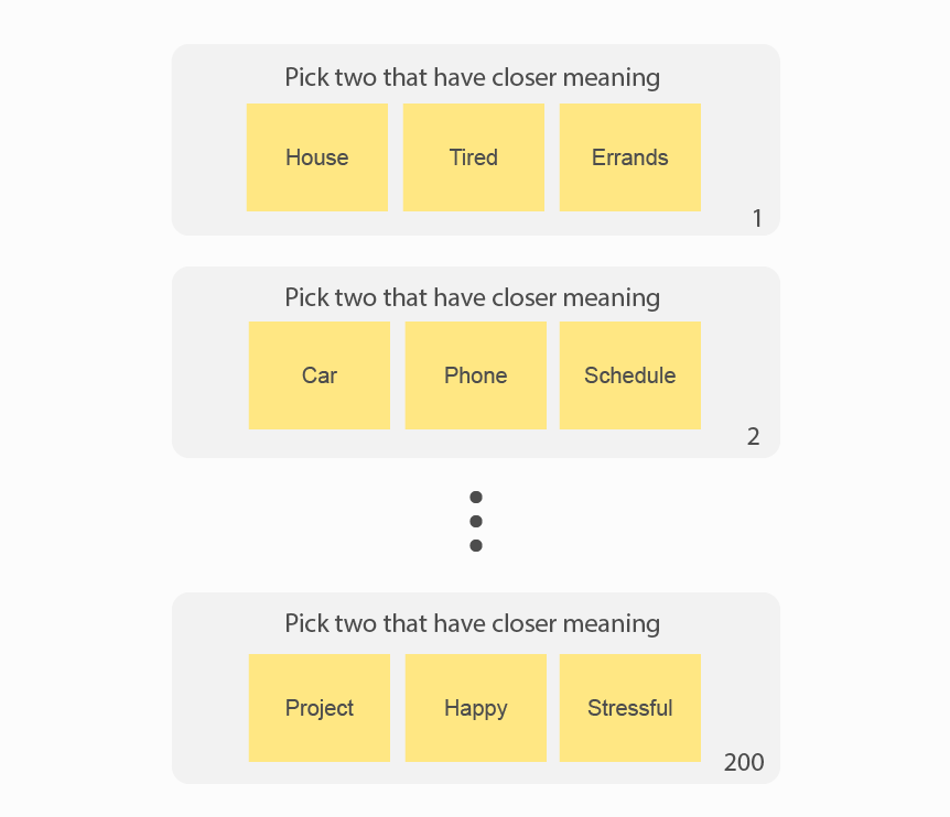 As a result, I used the Triad Task method from Cognitive Psychology to explore.
